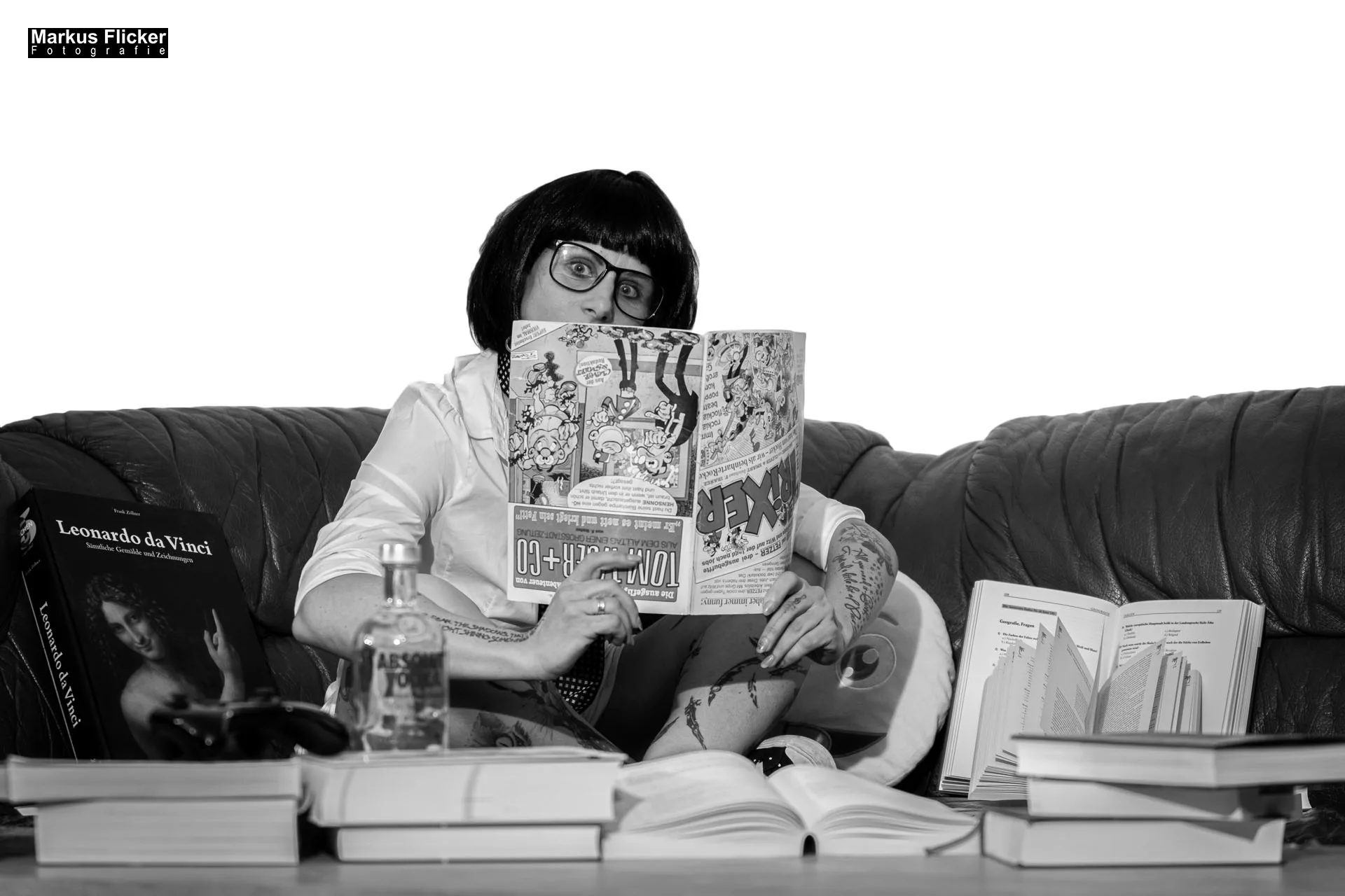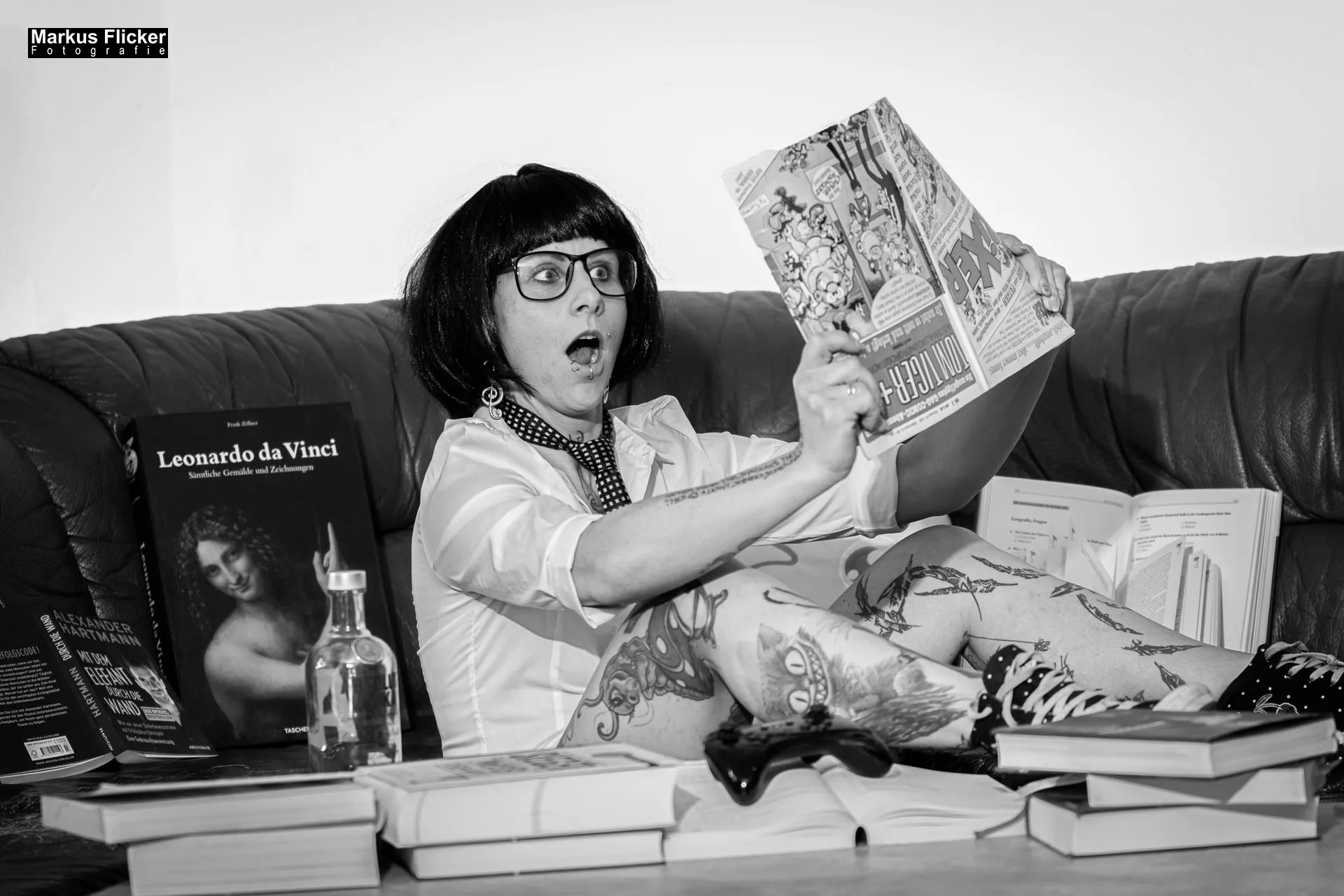 Das Comic Book Pop Art Style Fotoshooting mit Elke, bekannt als Little Crazyinkedgirl Tattoomodel, ist ein perfektes Beispiel dafür, wie die Fusion von Fotografie, Kunst und persönlichem Ausdruck zu außergewöhnlichen Werken führen kann. Als Fotograf und Videograf strebe ich stets danach, in jedem Projekt, das ich übernehme, Grenzen zu verschieben und Neuland zu erkunden. Dieses Projekt war keine Ausnahme; es bot eine einmalige Gelegenheit, kreative Visionen mit technischer Expertise zu verbinden und dabei ein atemberaubendes Portfolio zu schaffen, das sowohl die Essenz des Pop Art Stils einfängt als auch die einzigartige Persönlichkeit und die Tattookunst von Elke hervorhebt.