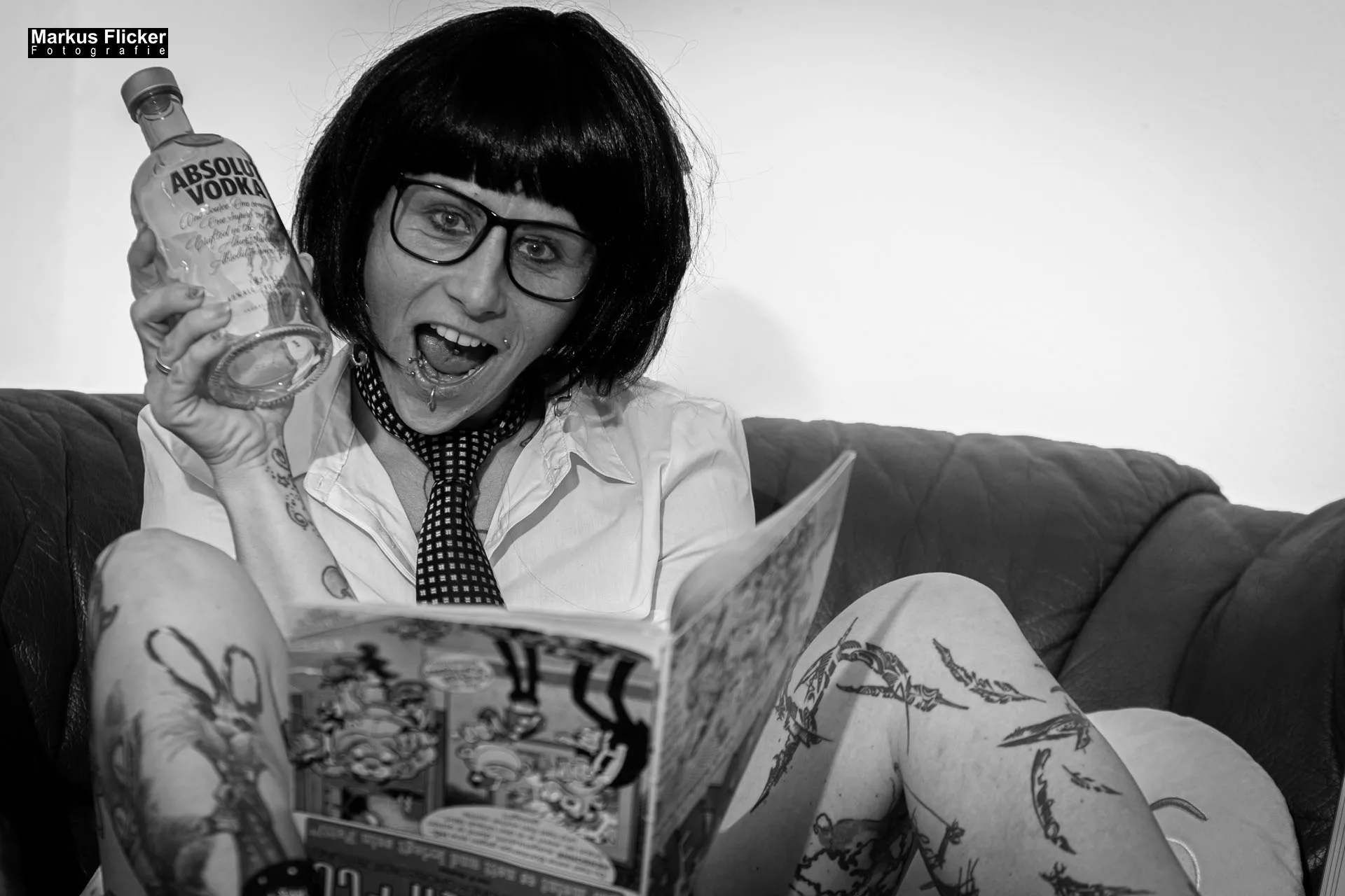 Die Vorbereitung des Shootings war umfangreich und detailliert. Zuerst führten Elke und ich ausgiebige Gespräche, um unsere Visionen und Ideen abzustimmen. Diese Anfangsphase war entscheidend, um sicherzustellen, dass wir beide ein klares Verständnis der künstlerischen Richtung hatten, die wir verfolgen wollten. Anschließend ging es um die Auswahl der Outfits und Accessoires, die nicht nur zu Elkes Tattoos passten, sondern auch die visuelle Sprache der Pop Art widerspiegelten. Jedes Element wurde sorgfältig ausgewählt, um sicherzustellen, dass es die gewünschte Botschaft und Stimmung vermittelt.