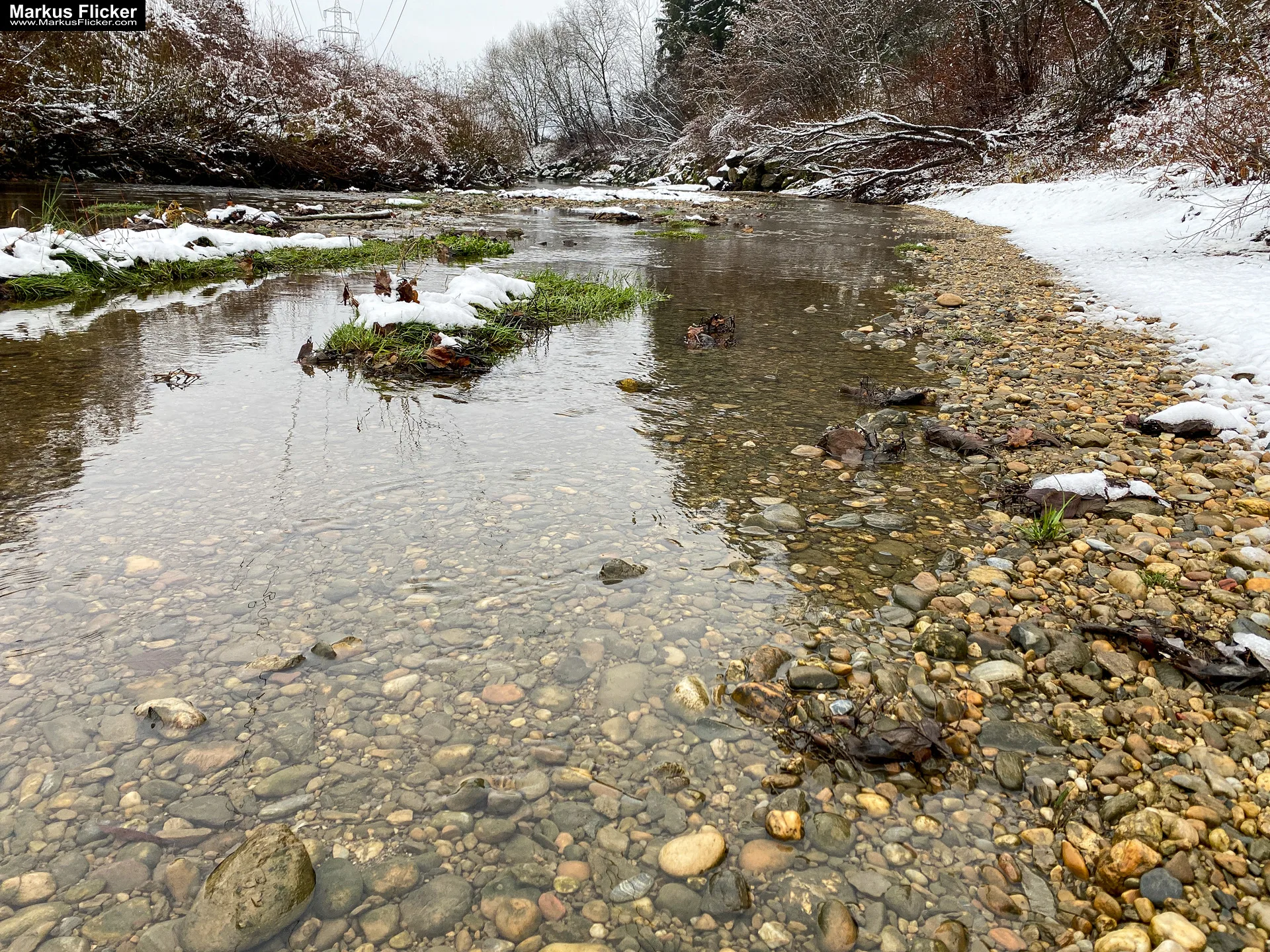- Langzeitbelichtung von Flüssen und Bächen: Fotografiere fließende Gewässer im Winter mit Langzeitbelichtung, um den Effekt von glattem, fließendem Wasser und vereisten Ufern zu erzeugen.