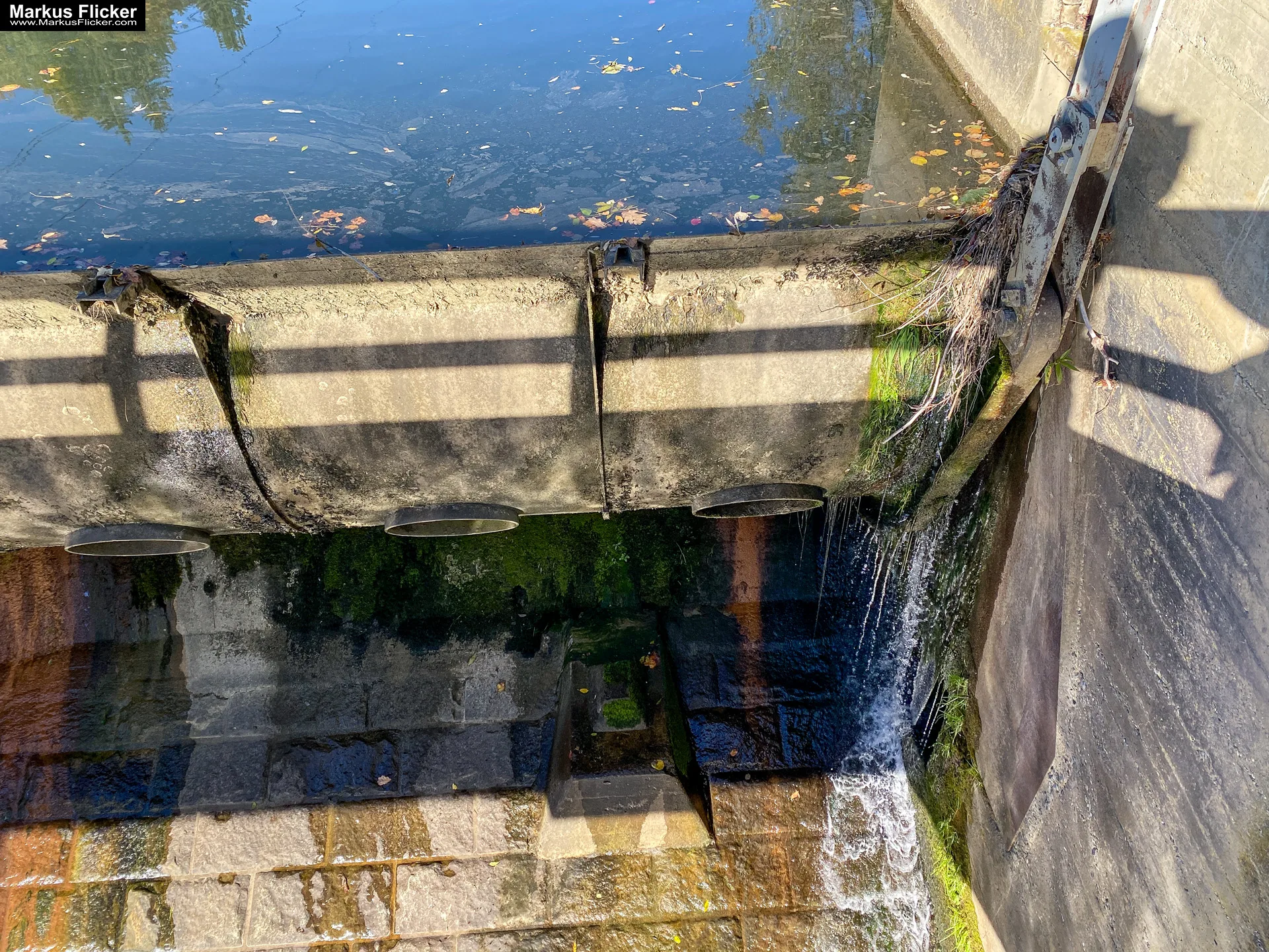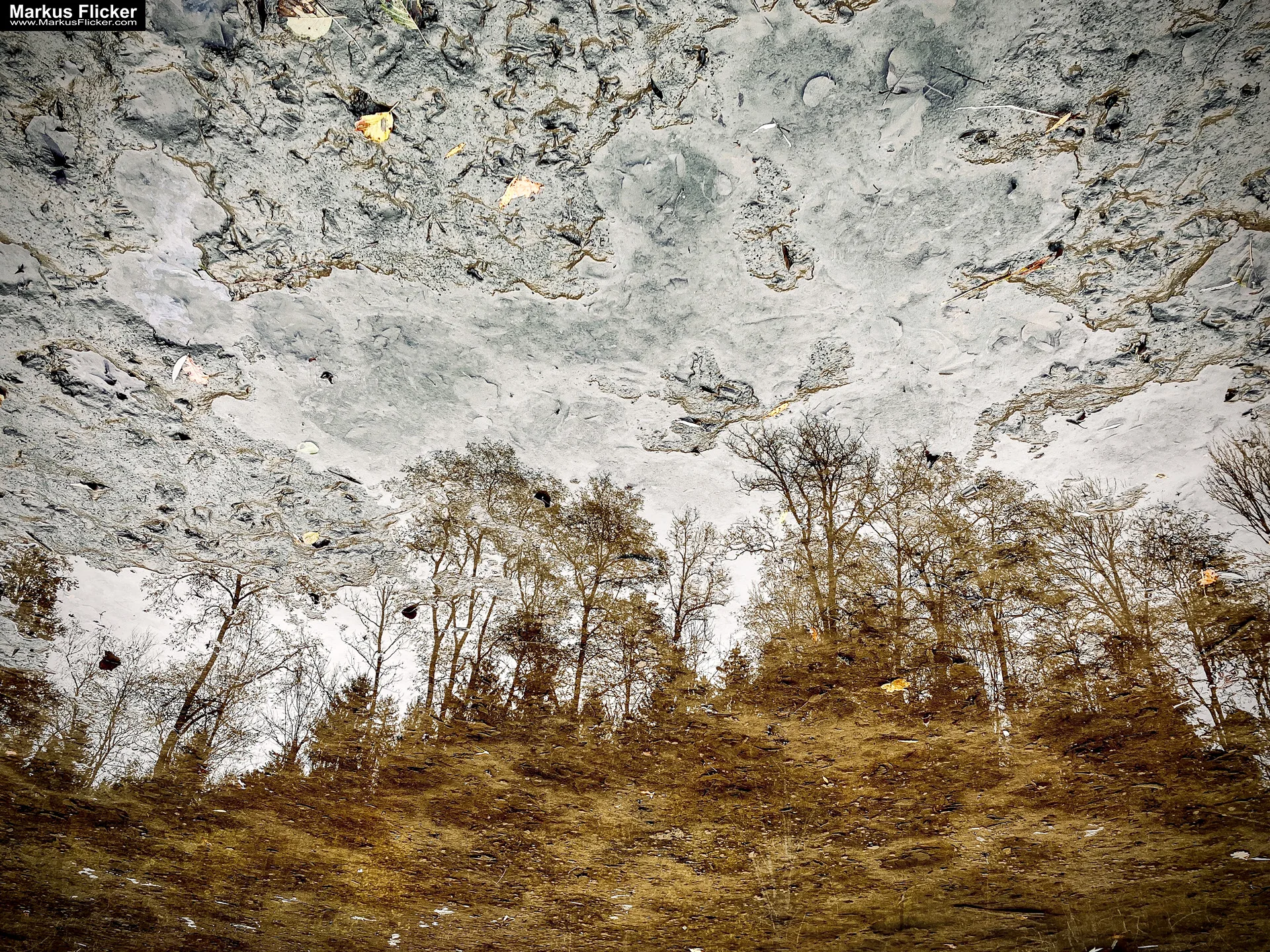 Wasserflächen nutzen: Der Herbsthimmel verdoppelt sich im Spiegelbild.