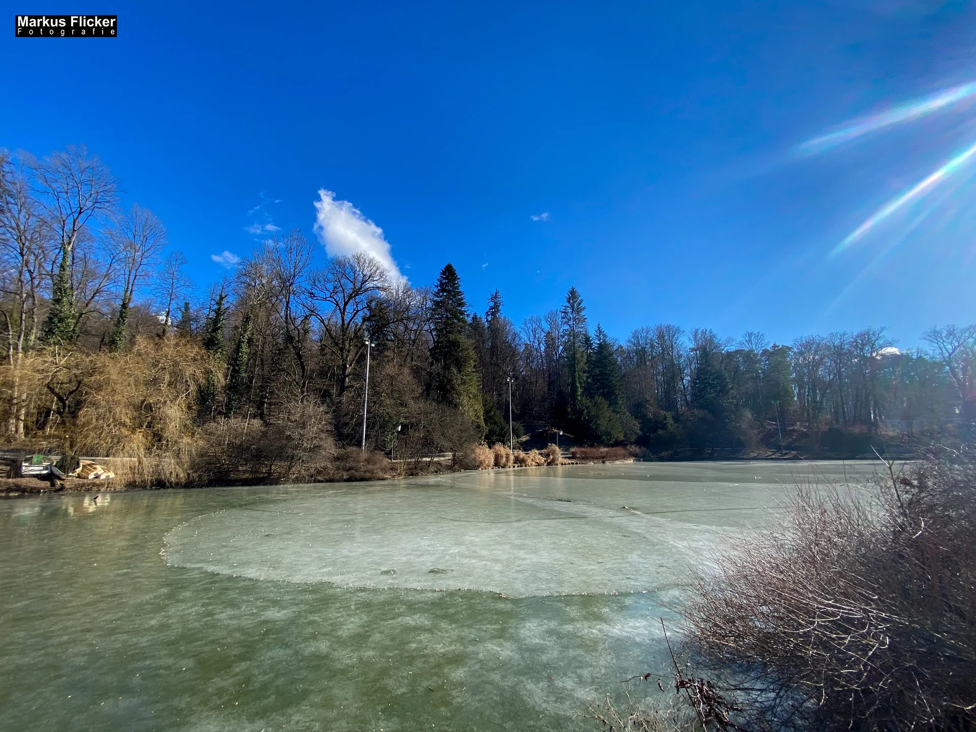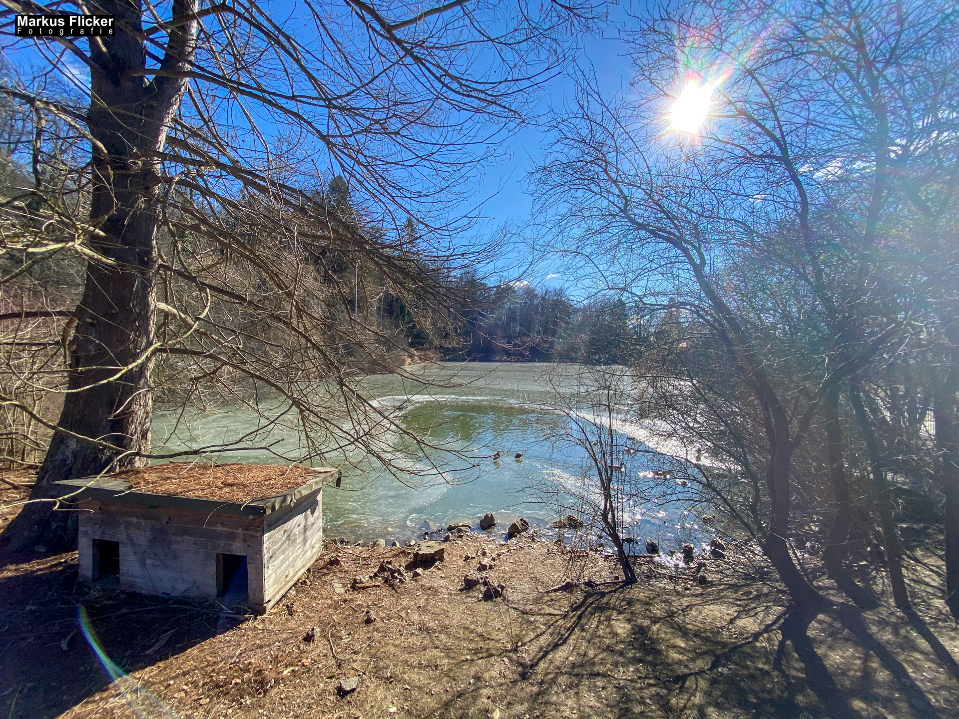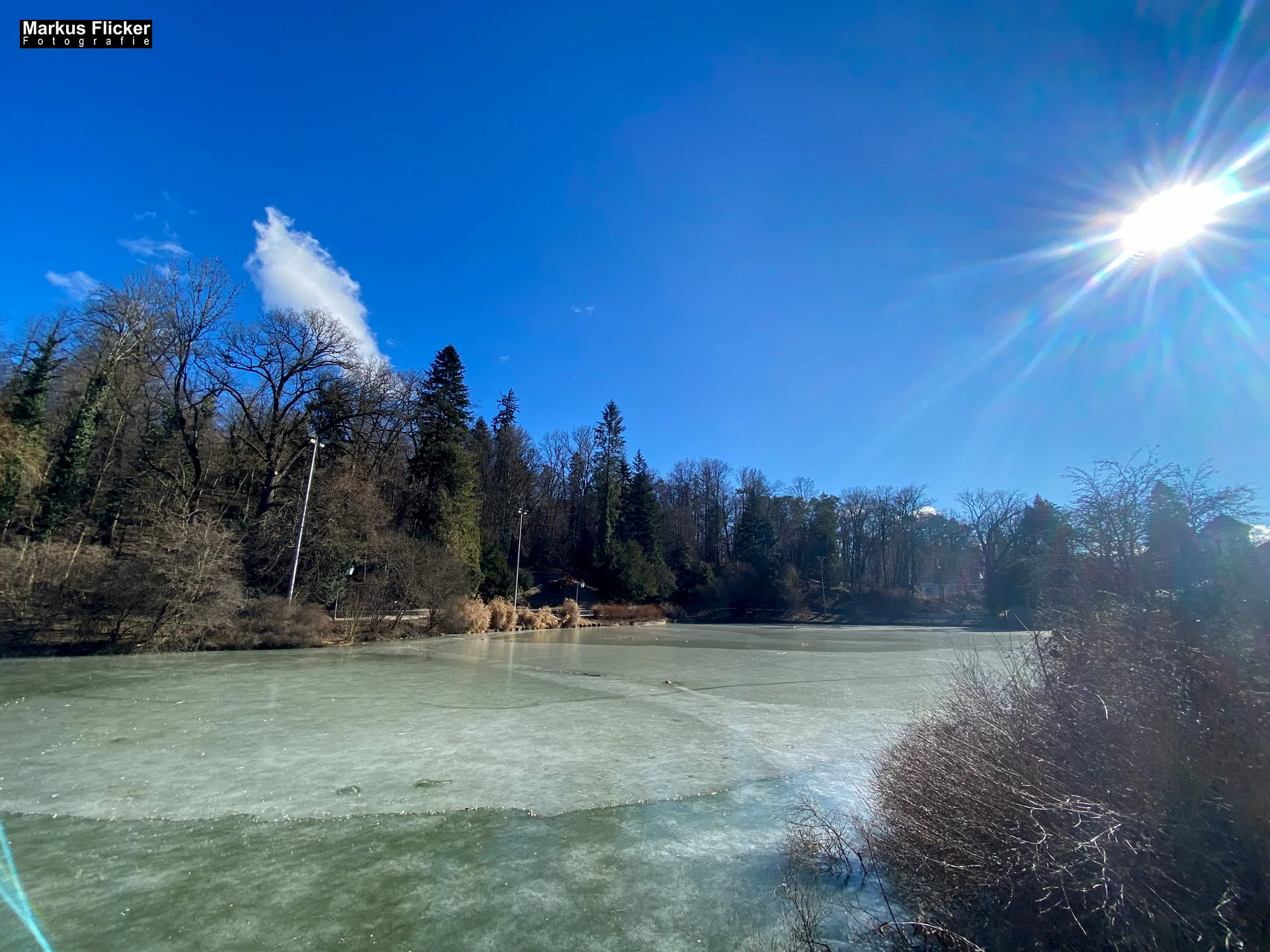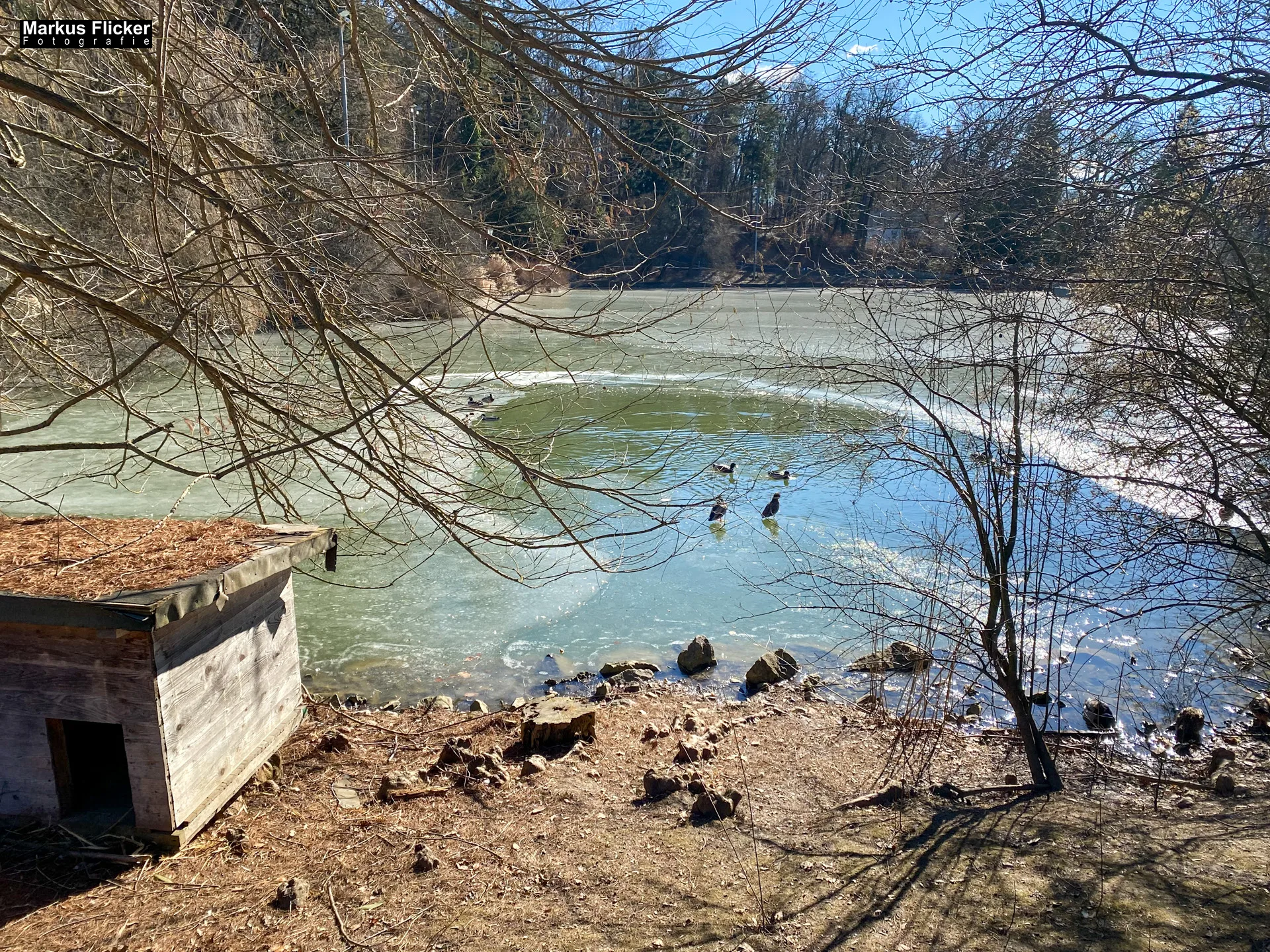 Sobald Sie die Hilmwarte erreichen, werden Sie mit einer atemberaubenden Aussicht auf den gefrorenen Hilmteich und die umliegende Landschaft belohnt. Im Winter erstreckt sich eine weiße Decke über den See, die von den Bäumen am Ufer gesäumt wird. Die Hilmwarte bietet die perfekte Perspektive, um die magische Szenerie festzuhalten und unvergessliche Winterfotos zu machen.