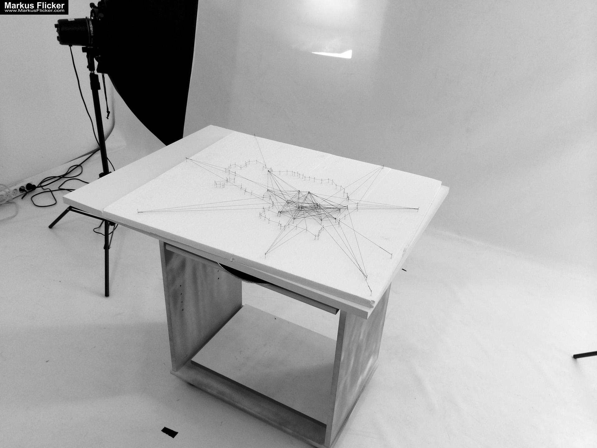 Papierstäbe und Strahlen: Schneide lange, dünne Streifen aus Papier und beleuchte sie seitlich, um starke Schatten und Lichtstrahlen zu erzeugen.