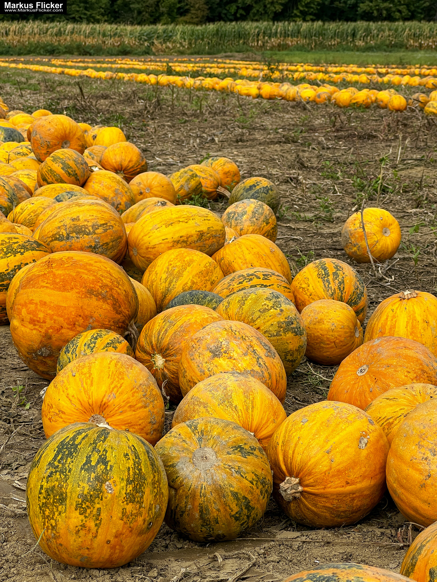 Ich machte ein paar Aufnahmen von den Kürbissen und probierte verschiedene Perspektiven aus. Ich kniete mich hin, um einige Nahaufnahmen zu machen und ging dann ein Stück weiter, um einen Überblick über das gesamte Feld zu bekommen.