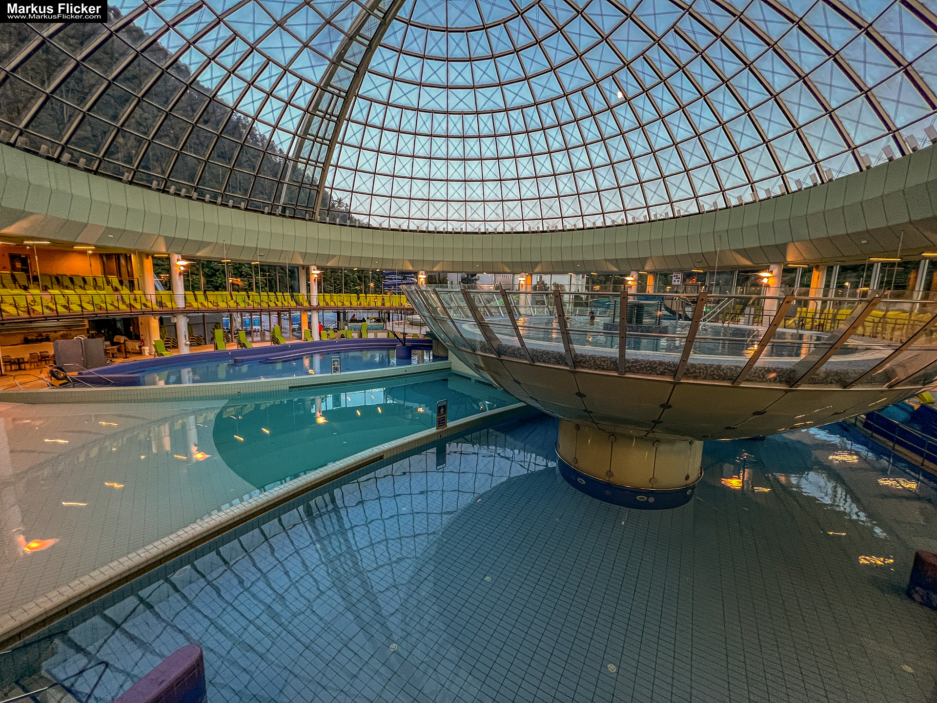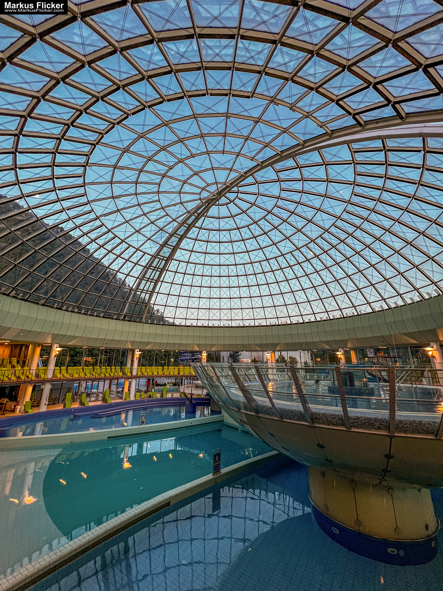 Als Fotograf war ich von der Schönheit des Ortes einfach fasziniert. Die Therme bietet eine Vielzahl von Pools und Saunen, die von heißen Quellen gespeist werden. Die Architektur der Therme ist modern und stilvoll und das Design ist unglaublich beeindruckend. Ich habe viele Stunden damit verbracht, die verschiedenen Räume und Pools zu erkunden und die Schönheit der Therme einzufangen.