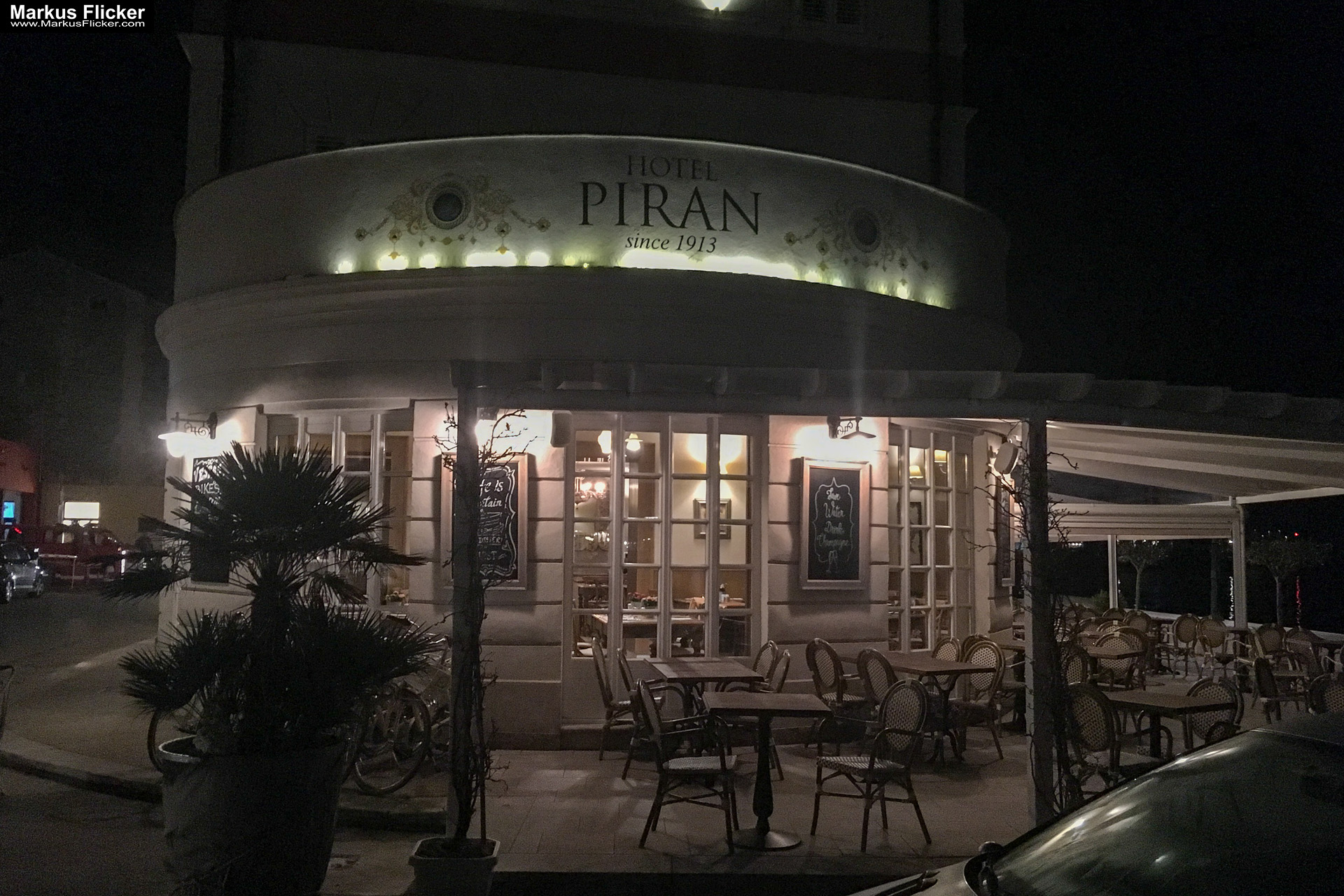 Die meisten landen allerdings erstmal im Restavracija Pavel direkt neben dem Hotel Piran. Sehr zu empfehlen ist das Punta Caffe, das letzte Lokal am Ende der Promenade.