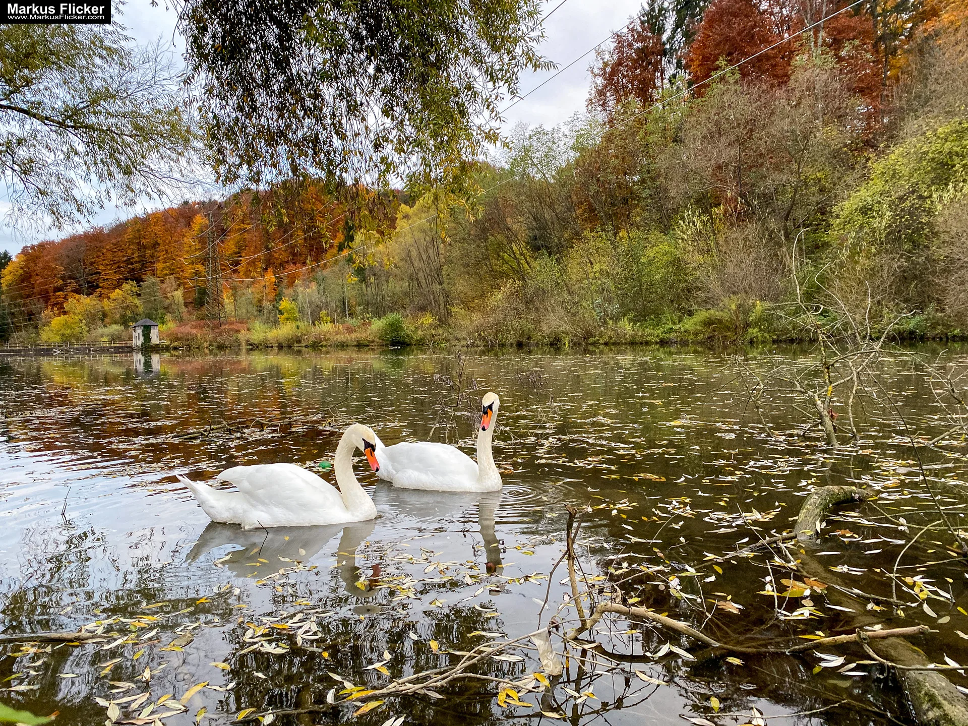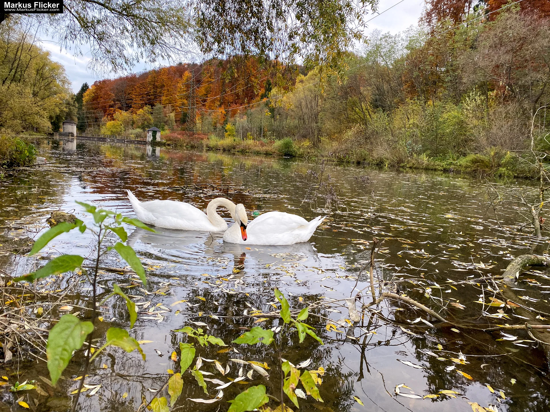 - Herbstlaub als Rahmen: Nutzen Sie das bunte Herbstlaub als natürlichen Rahmen um die Schwäne.
