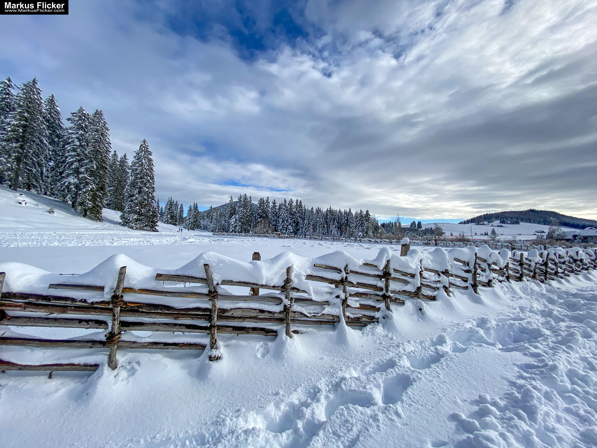 Schneebedeckte Landschaften: Die schneebedeckten Almen und Berge sind ein märchenhaftes Motiv. Versuche, die Ruhe und Stille der Winterlandschaft einzufangen.