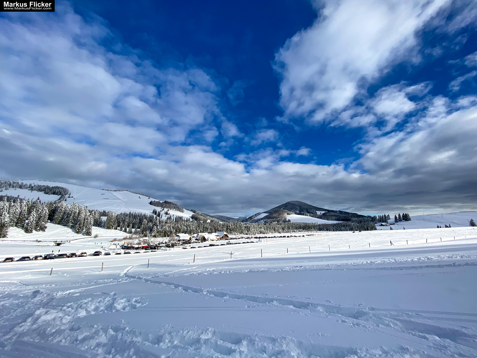 Schneeschuhwanderer: Dokumentiere Schneeschuhwanderer, die durch tiefen Schnee stapfen. Diese Aktivität ist typisch für die Region und bietet interessante Motive.