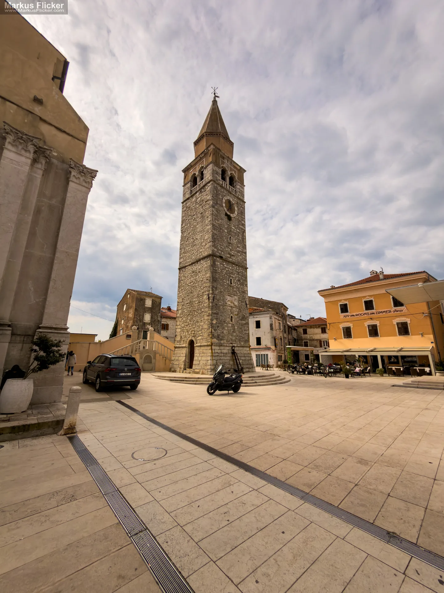 Der Reiz liegt oft in den kleinen Details. Eine schmale Gasse, die plötzlich den Blick aufs Meer freigibt. Ein alter Platz, auf dem du kurz innehältst. Ein Kirchturm, der die Dächer überragt. Hauswände, auf denen sich Alter, Witterung und mediterrane Farbeinschläge abzeichnen. Wenn du gerne Städte entdeckst, die Geschichte nicht laut erzählen, sondern beiläufig spürbar machen, wirst du die Altstadt von Umag mögen.