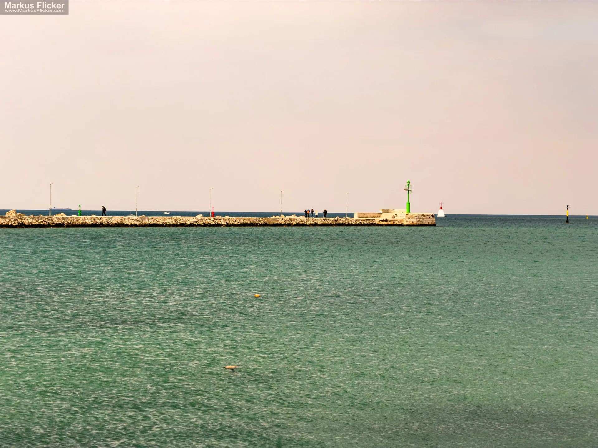 Auch die Atmosphäre am Wasser verändert sich über den Tag. Morgens begegnen dir oft Jogger, Spaziergänger und Menschen, die den Tag ruhig beginnen. Mittags dominieren Sonnenlicht, Badestimmung und sommerliche Leichtigkeit. Gegen Abend wird das Licht weicher, die Temperaturen sinken leicht und genau dann entstehen oft die schönsten Momente. Wenn die Sonne tiefer steht und sich Himmel und Meer farblich verändern, spürst du besonders intensiv, warum die Adria für so viele Menschen ein Sehnsuchtsort ist.