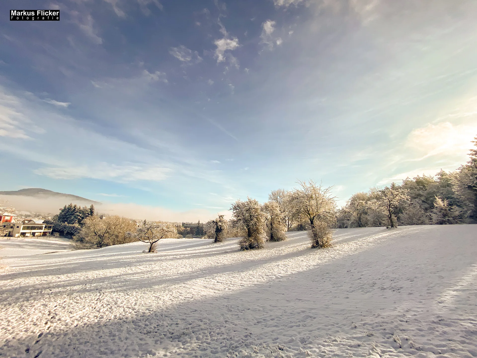 Golden Hour nutzen: Fotografiere während der goldenen Stunde, kurz nach Sonnenaufgang oder kurz vor Sonnenuntergang. Das warme Licht bringt die Winterlandschaft besonders schön zur Geltung.